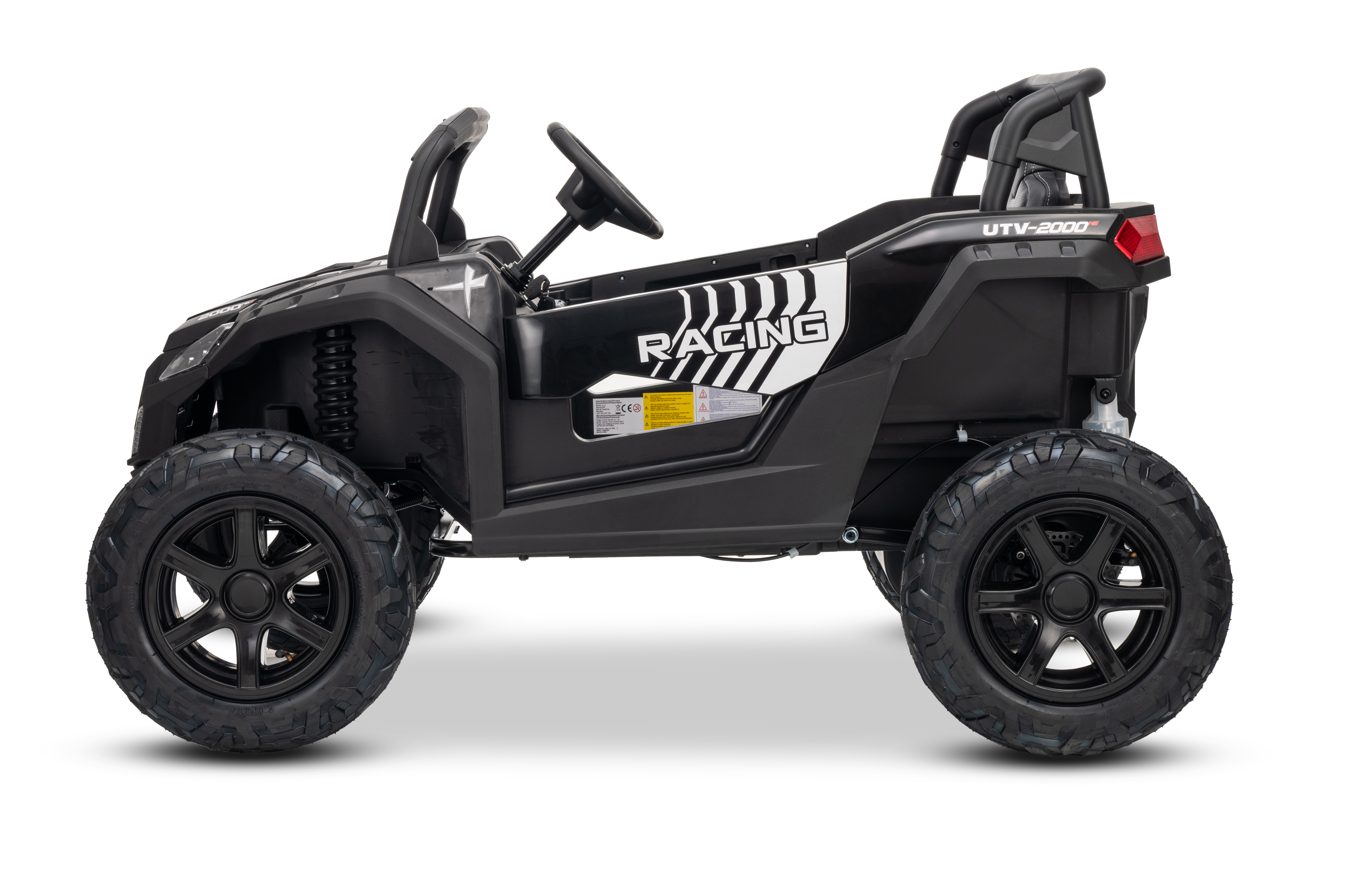 Elektrisches Kinderauto UTV XXL 24V, schwarz, zweitürig, Motor mit Differenzial, aufblasbare Gummireifen, gefederte Hinterachsen, Scheibenbremse, gepolsterter Sitz, verstellbares Lenkrad, Bluetooth, MP3-Player mit USB/SD-Anschluss